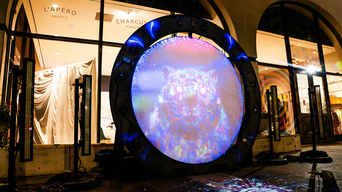 “STARGATE” is a 12-foot sculpture by Jay Tettamanti that leads visitors on a journey through the cosmos through projection mapping and mesmerizing visuals.