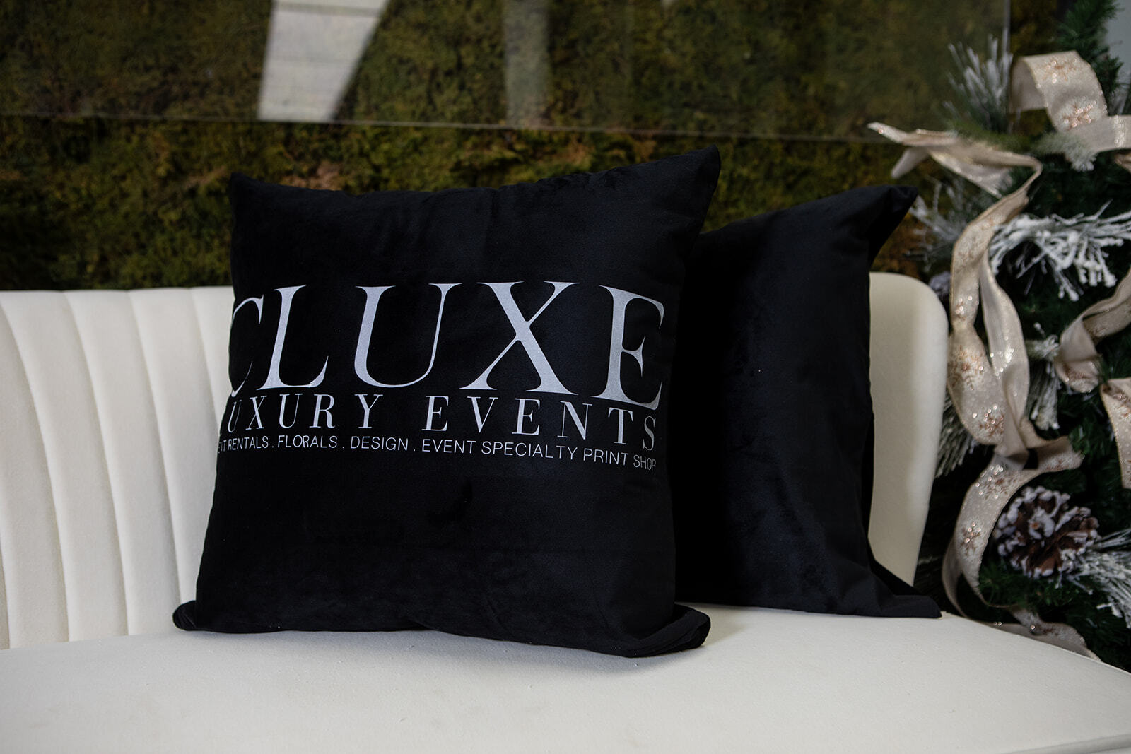 CLUXE’s Specialty Printshop is your premier destination for custom event branding and design. From dance floor and wall wraps to branded backdrops, signage, and bar wraps, CLUXE specializes in creating immersive, one-of-a-kind experiences. Their offerings also include custom-printed fabrics, branded packaging, welcome bags, and personalized accents like towels, pillows, and napkins.