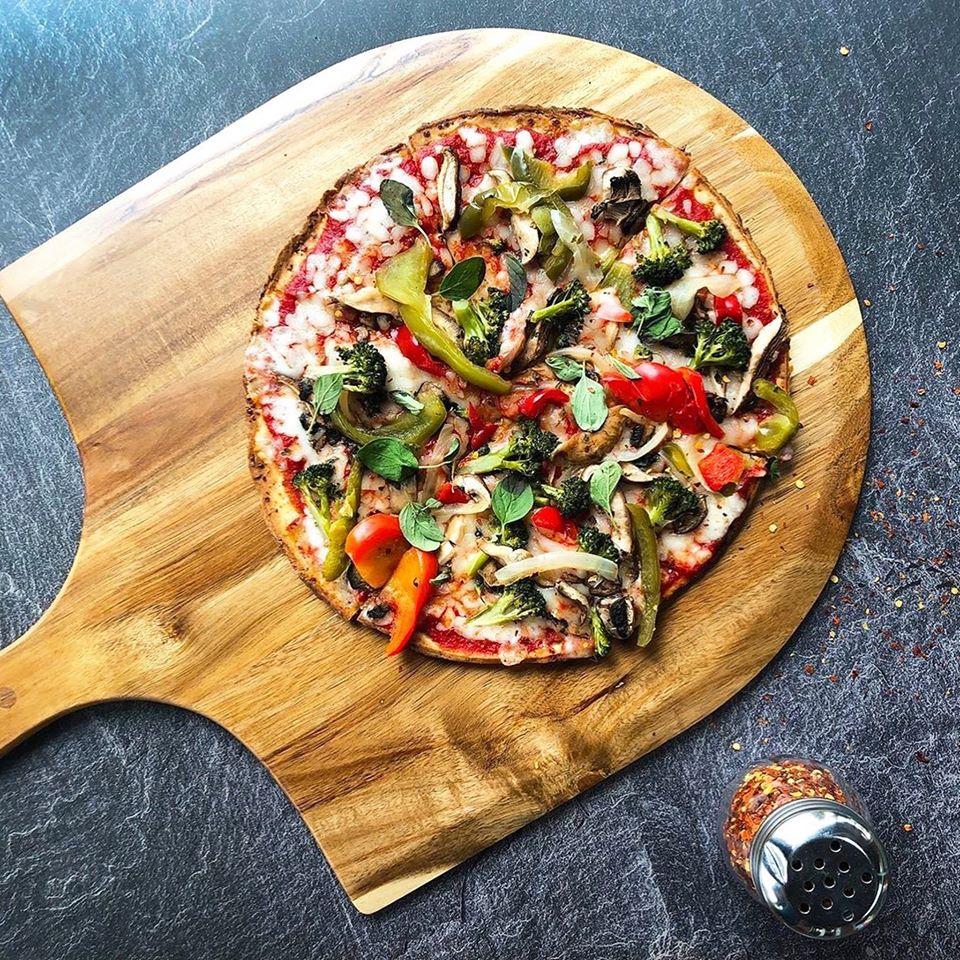 Enjoyed the beautiful Fall weather outside with a nice lunch on the covered patio. The thin crust, wood-fired specialty pizzas were delicious, and the service was great as well. 2 pizzas are more than enough for two hungry people! We probably would've saved some slices for later if we had been going straight home afterwards! It's not on the menu, but they offer soy cheese substituted at no extra charge if you ask!