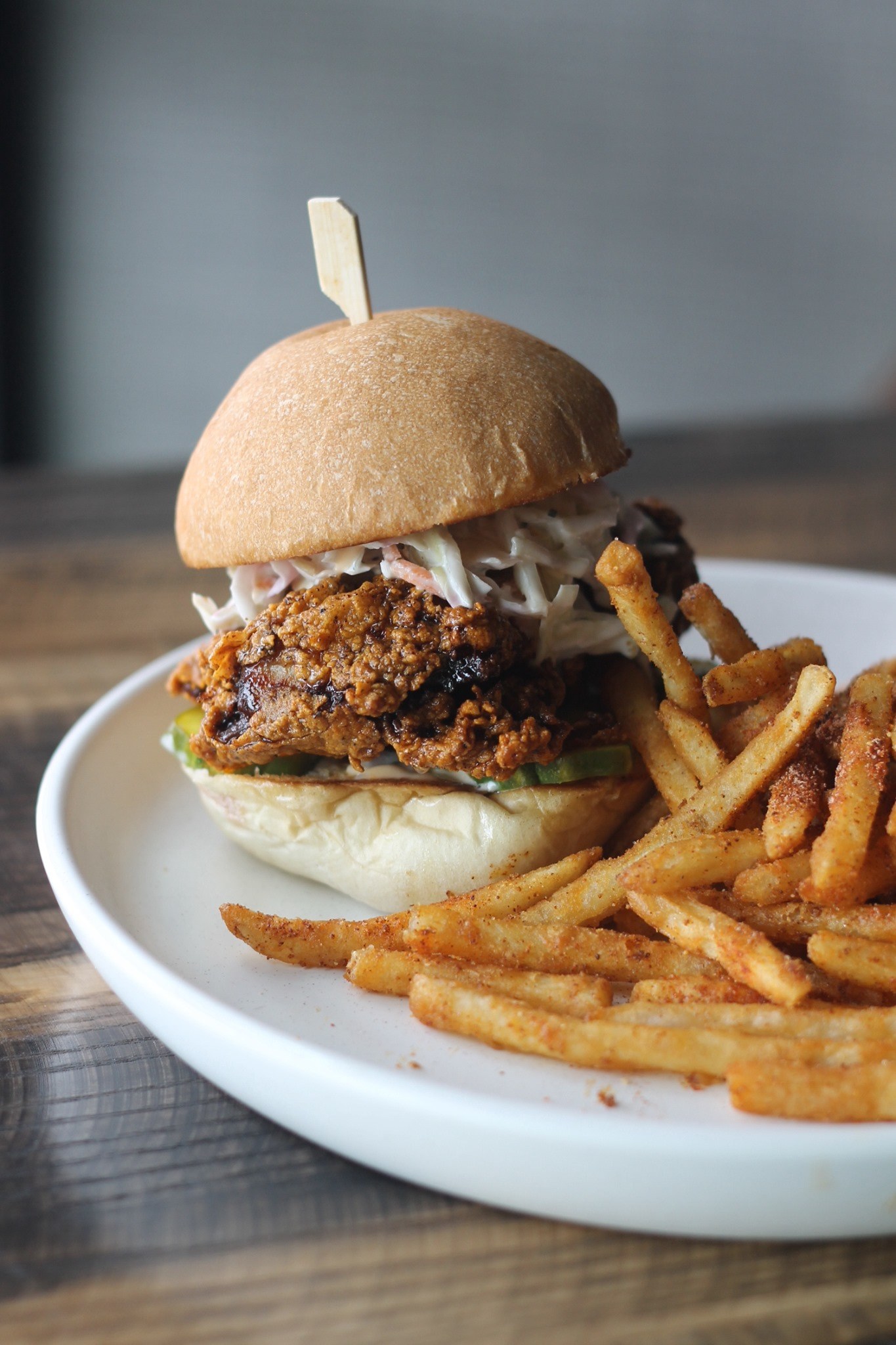My wife and I went there this morning for our 2nd year wedding anniversary. We were honestly surprised by how nice the inside of the restaurant was. The dcor was really nice and the ambience was perfect. The table we sat at was huge and the seats were extremely comfortable. We ordered the Nashville hot deviled eggs as an appetizer, we had the buttermilk chicken and waffles and the southern benedict. For the most part the food was pretty good. I really enjoyed the peach chutney on top of the chicken. My one big complaint was the poached eggs on the benedict were vastly overcooked. The whole point of a poached egg is for it to run on top of the food after you break it open. These eggs were hard boiled and missed the mark. The potatoes were amazing, nice and crunchy. Our only other complaint was that was asked our server twice for a second cup of coffee and it never came. Overall, good spot and we will be back to try some cocktails and the dinner menu.