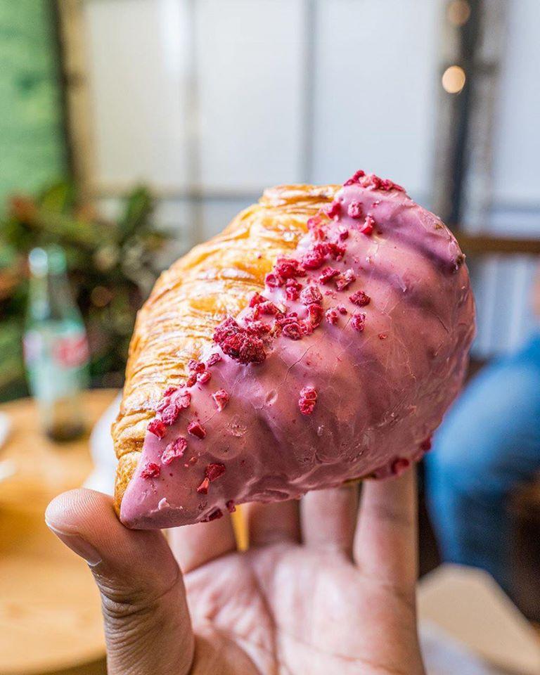 Tried the Iced cafe con tres leches and strawberry chiffon. That iced coffee was phenomenal - smooth and delicious! My family tried the chocolate croissant and chocolate chip cookie sandwich. Everyone enjoyed their options.