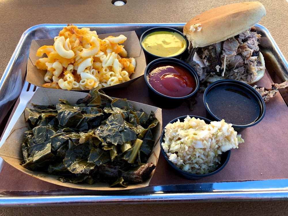 First, the meat is nicely smoked and tender. Great for the true lover of the art of slow smoked meats. Mac&cheese and is a casserole style but not the traditional consistency and lacks flavor. The baked beans aren't sweet or savory and left me ambivalent like the flavor. All four sauces are the traditional North Carolina vinegar base. Don't expect a sweet sauce offering. Very casual dining; larger sitting area outside. Great if you favor mild flavors.