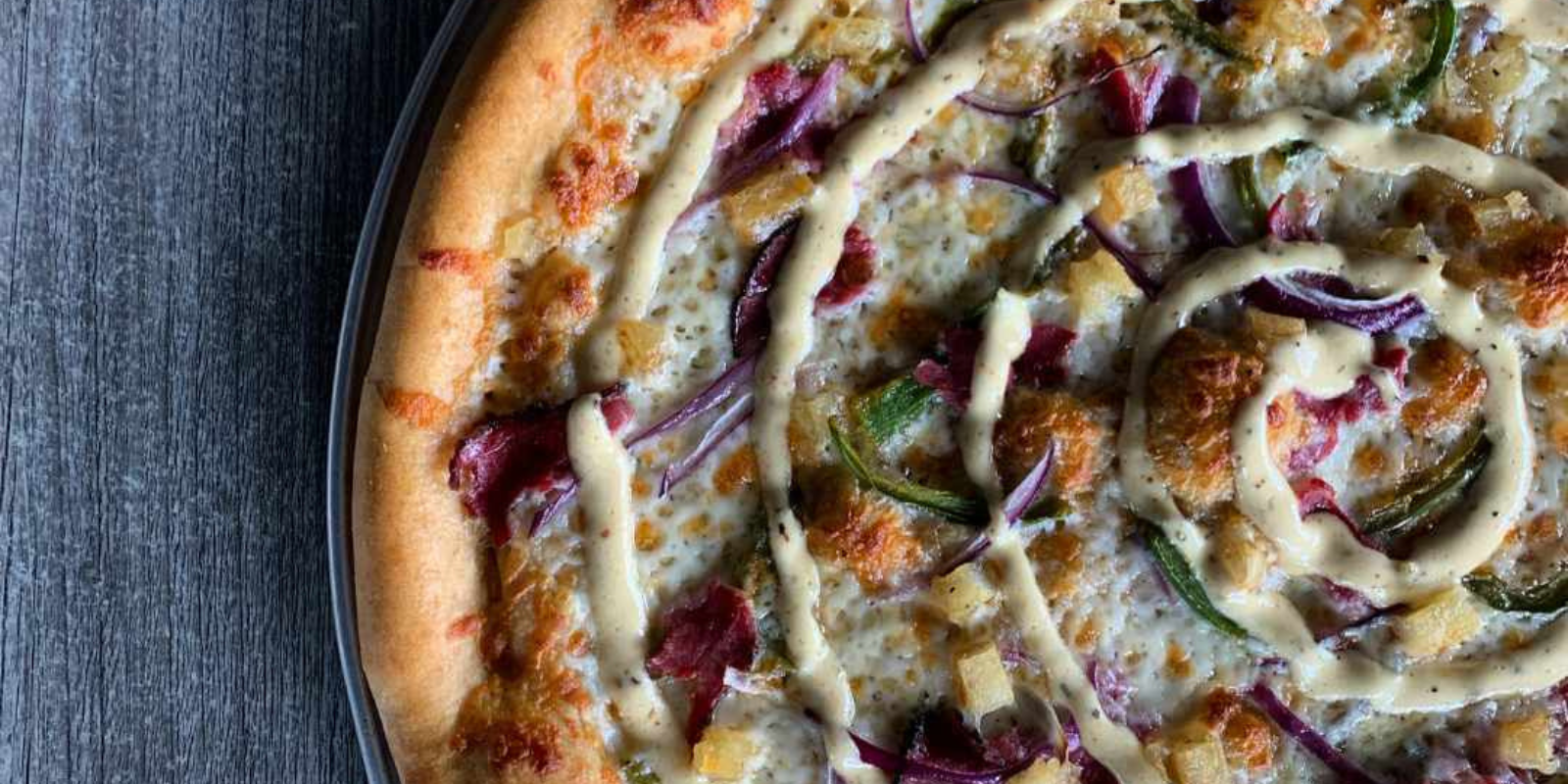 One of the few pizza places that have pesto as a base option! The truffle fries are delicious too