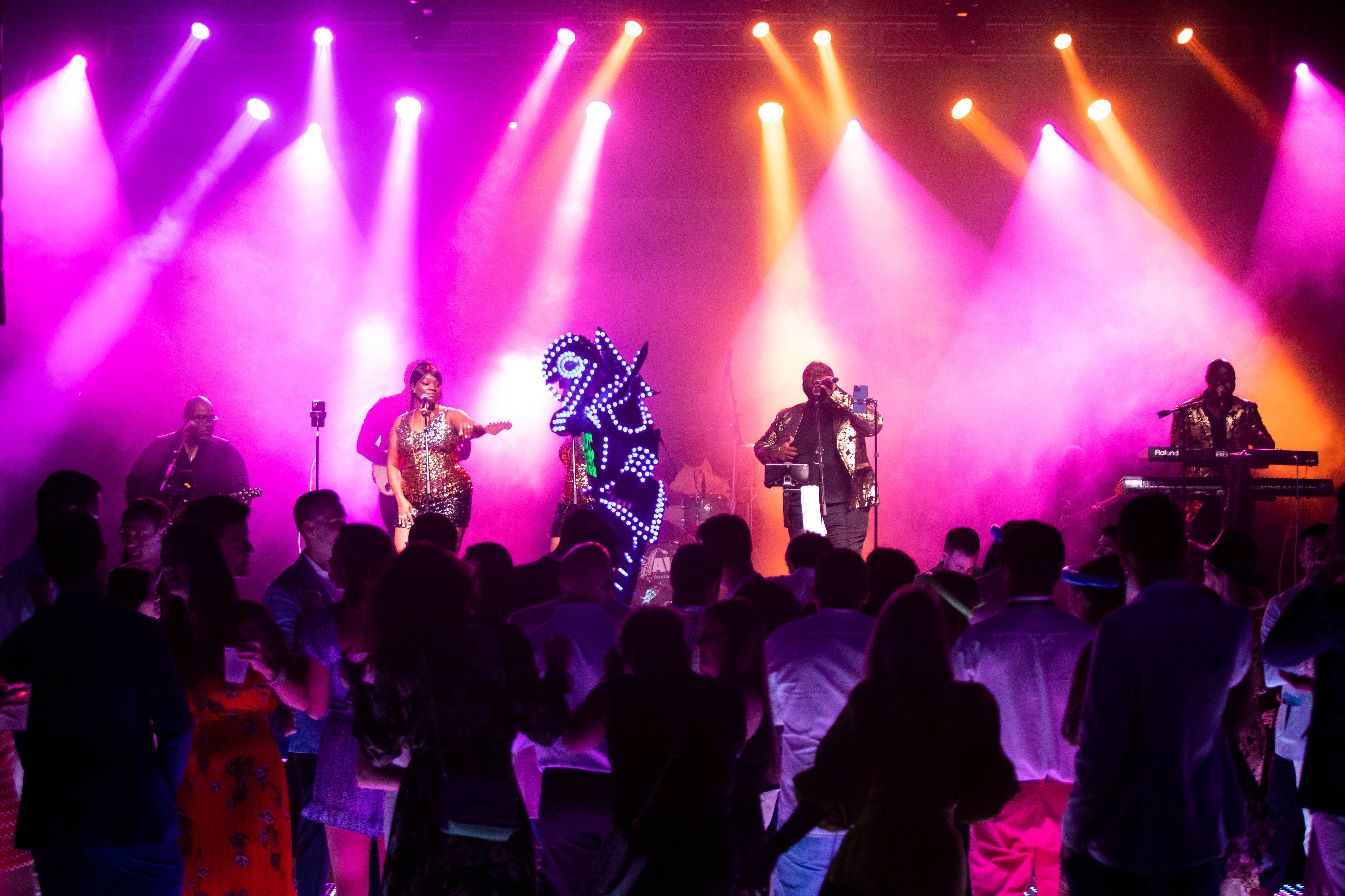 Nice, intimate venue with "mosh pit" style viewing of the stage, as well as VIP seating scattered across the rear and side of venue. Bar staff at the bars (yes, there are multiple) are friendly and definitely do not skimp on the alcohol in the cocktails. Large bathrooms to accommodate guests. Limited menu is offered, but if you are general admission, you are eating standing up. Plenty of security to check you in and ID and wrist band you for alcoholic beverages.
