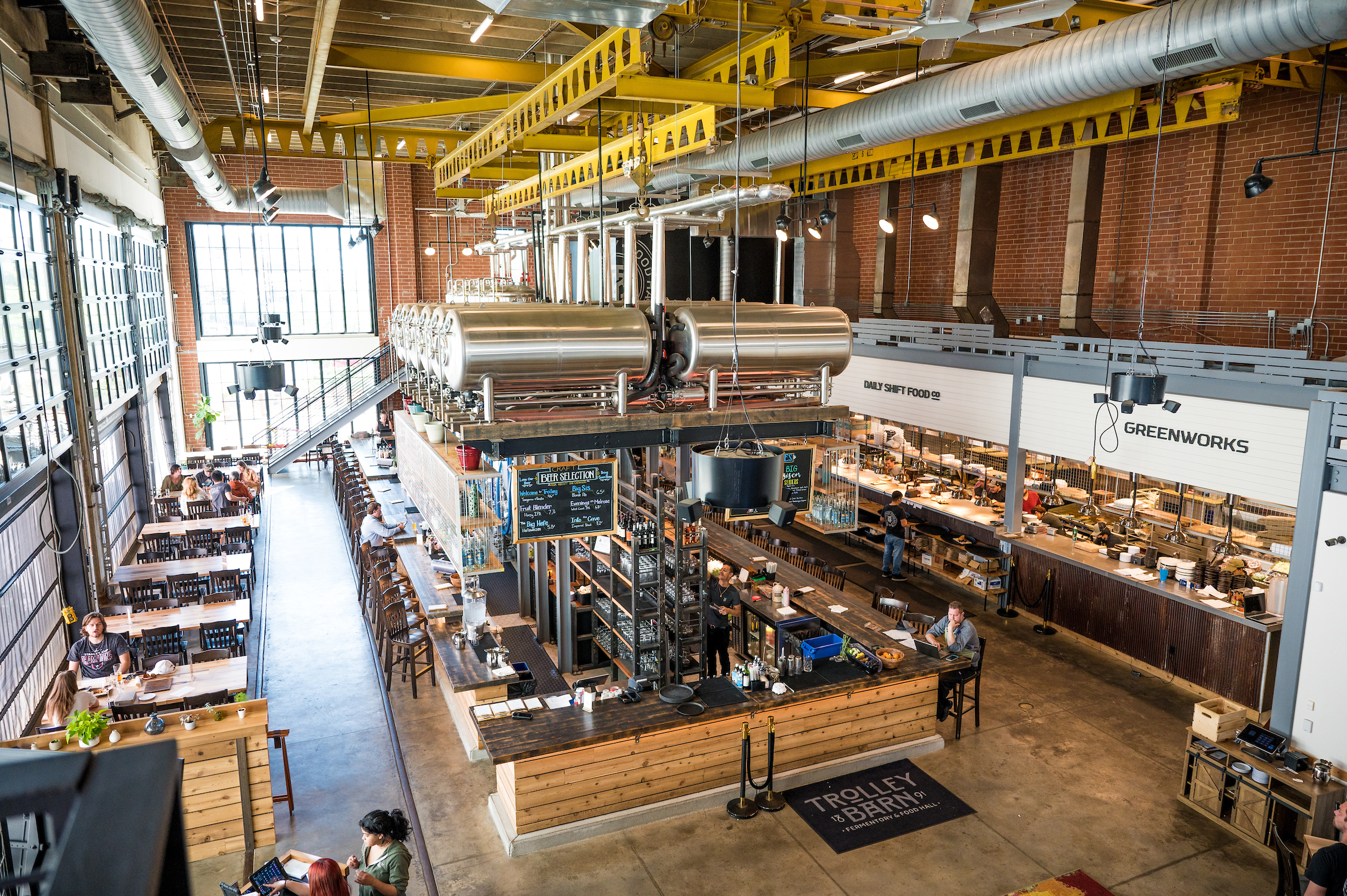 Housed in a former trolley car maintenance garage, this industrial-chic hub now pours daring, ever-rotating, small-batch beers and serves up mix-and-match bites from eclectic food stalls.